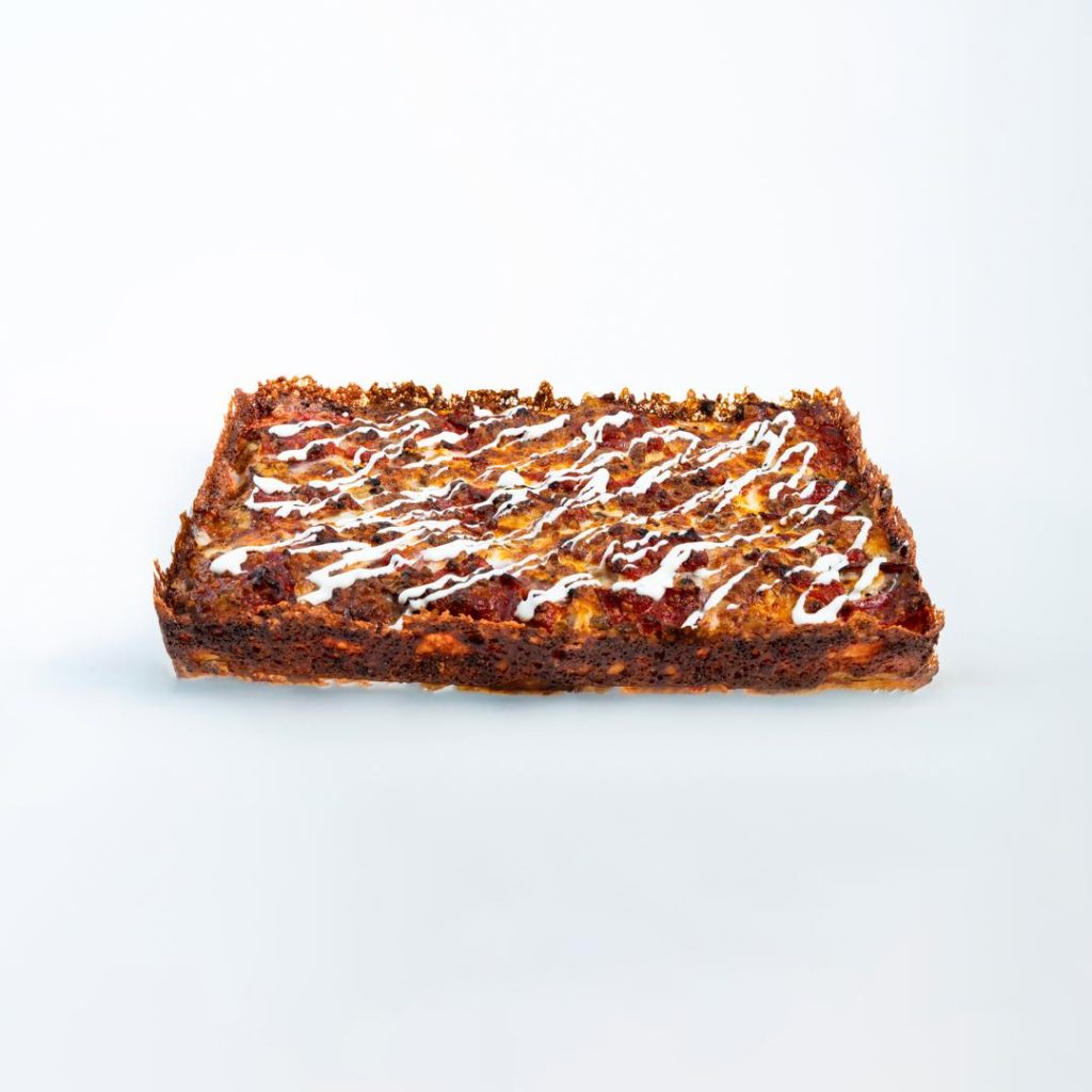 نان با مخمرطبیعی،پنیرموزارلا،سس گوجه ،گوشت رست بیف ،بیکن ،قارچ ،سس خامه